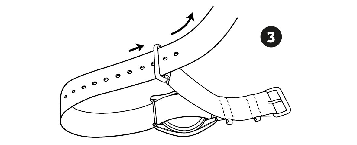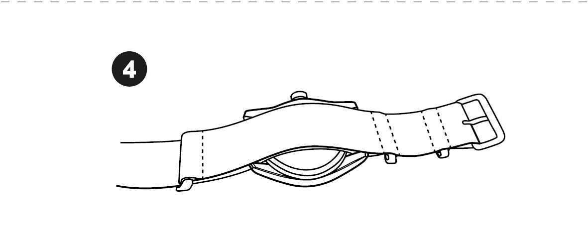 Below is a visual instruction showing how to change and install a Nylon Watch Strap on your Watch.
